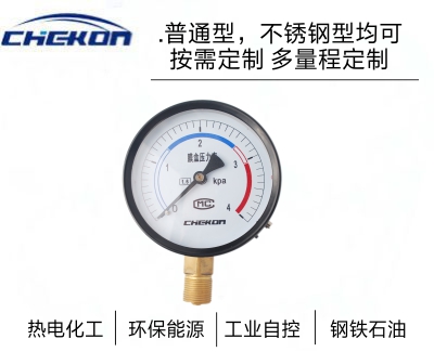 膜盒壓力表采用膜盒作為測量微小壓力的敏感元件。測量對銅合金不起腐蝕作用、無爆炸危險氣體的微壓和負壓,廣泛應(yīng)用于鍋爐通風(fēng)、氣體管道、燃燒裝置等及其他類似設(shè)備上。