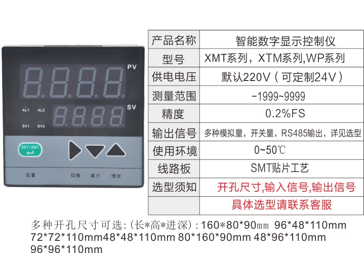 XMT系列智能數(shù)字顯示儀 萬(wàn)能信號(hào)輸入 4-20mA 上下限控制