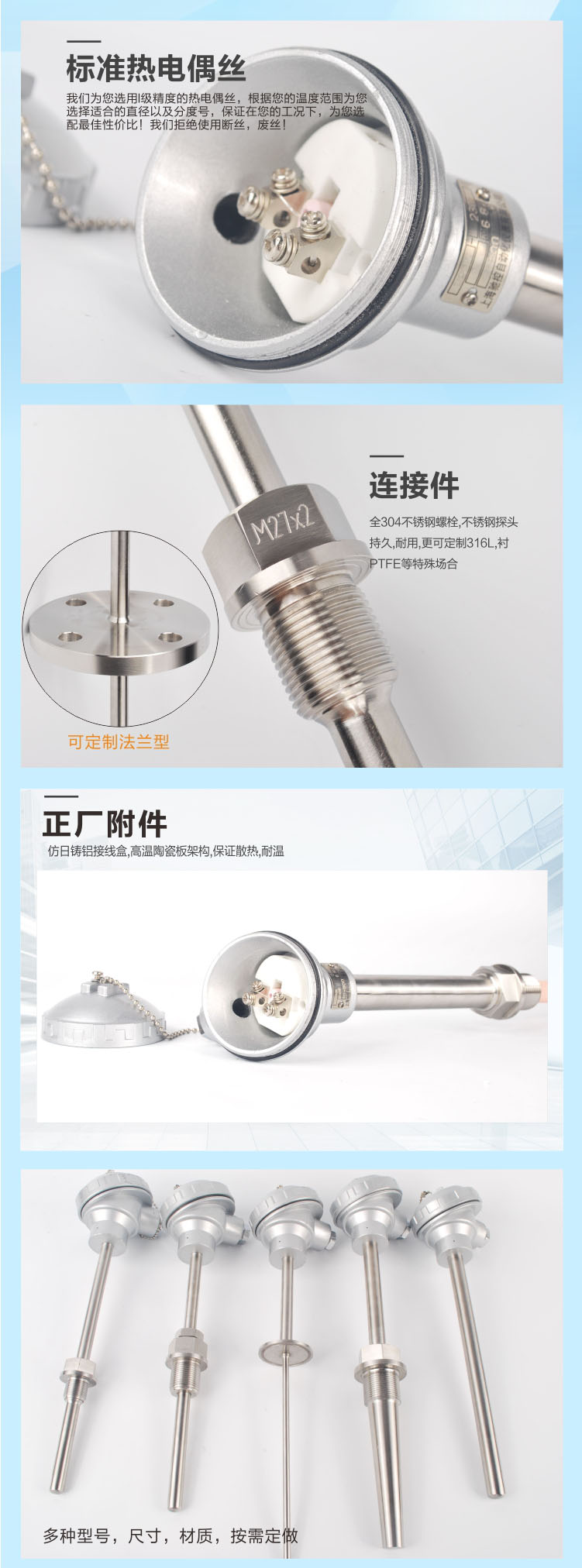 2、鎧裝熱電偶具有良好的耐振動(dòng)、抗沖擊性能。