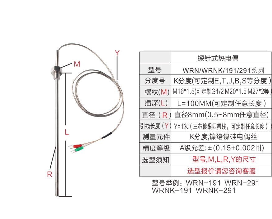 WRNK-191 291 探針熱電偶 E,K,J,T分度專業(yè)定制