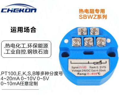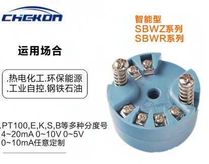 現(xiàn)場安裝在熱電偶、熱電阻的接線盒內(nèi)使用,直接輸出4-20mA、0-10mA的輸出信號。這樣既節(jié)約了昂貴的補(bǔ)償導(dǎo)線費(fèi)用,又提高了信號遠(yuǎn)距離傳輸過程中的抗干擾能力;